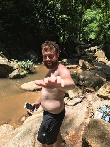 第162話 ぼくの夏休みは飛び込みありで大変タイ編! 飛込みの場所から真下を覗き込むと、結構な高さである。さすがに恐怖心が頭をもたげてきた。。 崖の横側の登りやすい岩場から、草や木を掴みながら登った僕たちは、崖の途中の少し開けている天然の飛込…